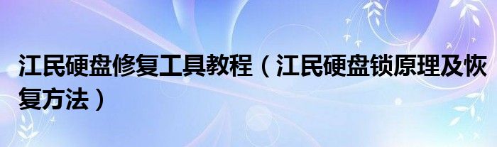 大家好,小太来为大家解答以上问题。江民硬盘修复工具教程,江民硬盘锁原理及恢复方法很多人还不知道,现在让我们一起来看看吧!