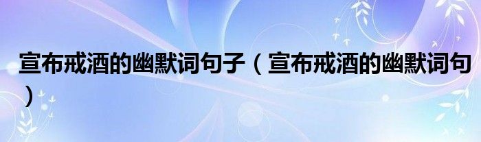 大家好,小晋来为大家解答以下问题,关于宣布戒酒的幽默词句子,宣布戒酒的幽默词句很多人还不知道,今天让我们一起来看看吧!
