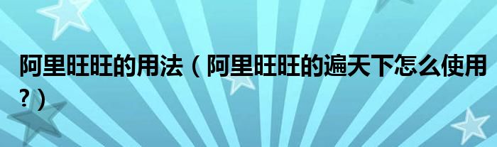 大家好,小太来为大家解答以上问题。阿里旺旺的用法,阿里旺旺的遍天下怎么使用?很多人还不知道,现在让我们一起来看看吧!