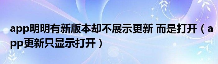 大家好,跳跳为你解答以上问题。app明明有新版本却不展示更新 而是打开,app更新只显示打开这个问题很多人还不知道,现在让我们一起来看看吧!