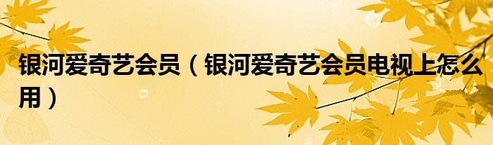大家好,跳跳为你解答以上问题。银河爱奇艺会员,银河爱奇艺会员电视上怎么用这个问题很多人还不知道,现在让我们一起来看看吧!