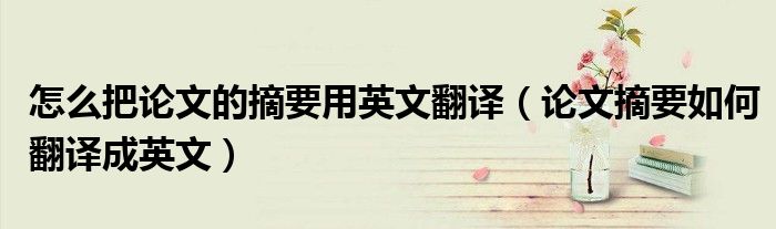 关于怎么把论文的摘要用英文翻译,论文摘要如何翻译成英文这个很多人还不知道,今天菲菲来为大家解答以上的问题,现在让我们一起来看看吧!