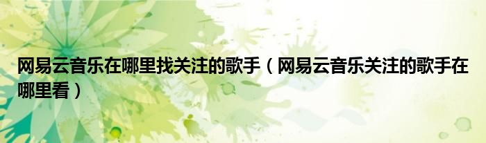 大家好,跳跳为你解答以上问题。网易云音乐在哪里找关注的歌手,网易云音乐关注的歌手在哪里看这个问题很多人还不知道,现在让我们一起来看看吧!