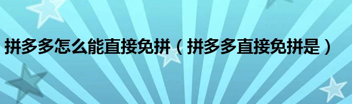 大家好,跳跳为你解答以上问题。拼多多怎么能直接免拼,拼多多直接免拼是这个问题很多人还不知道,现在让我们一起来看看吧!
