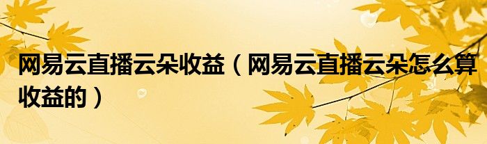 大家好,跳跳为你解答以上问题。网易云直播云朵收益,网易云直播云朵怎么算收益的这个问题很多人还不知道,现在让我们一起来看看吧!