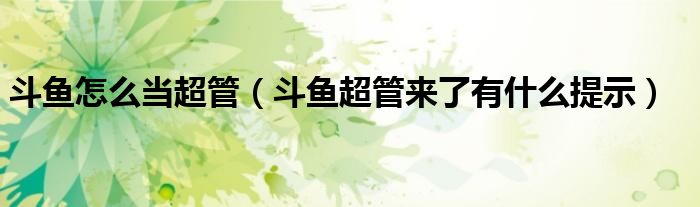 斗鱼怎么当超管(斗鱼超管来了有什么提示)