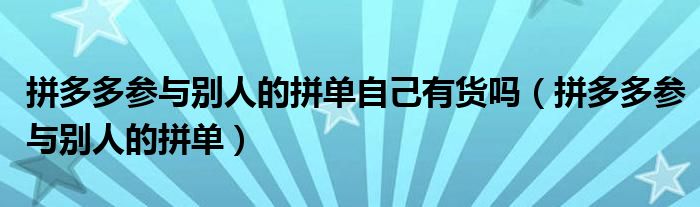 大家好,小晋来为大家解答以下问题,关于拼多多参与别人的拼单自己有货吗,拼多多参与别人的拼单很多人还不知道,今天让我们一起来看看吧!