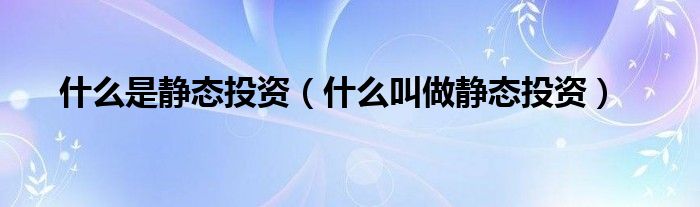 关于什么是静态投资,什么叫做静态投资这个很多人还不知道,今天菲菲来为大家解答以上的问题,现在让我们一起来看看吧!