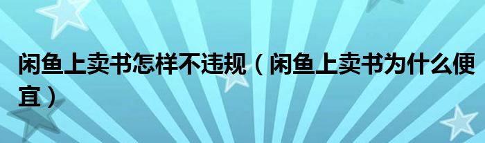 大家好,跳跳为你解答以上问题。闲鱼上卖书怎样不违规,闲鱼上卖书为什么便宜这个问题很多人还不知道,现在让我们一起来看看吧!