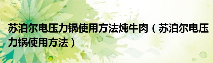 大家好,慧慧来为大家解答以上问题,苏泊尔电压力锅使用方法炖牛肉,苏泊尔电压力锅使用方法很多人还不知道,现在让我们一起来看看吧!
