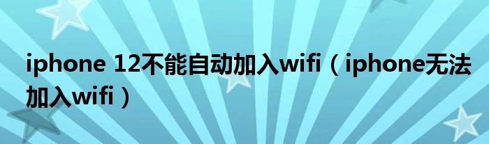大家好,慧慧来为大家解答以上问题,iphone 12不能自动加入wifi,iphone无法加入wifi很多人还不知道,现在让我们一起来看看吧!