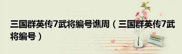 关于三国群英传7武将编号谯周,三国群英传7武将编号这个很多人还不知道,今天菲菲来为大家解答以上的问题,现在让我们一起来看看吧!