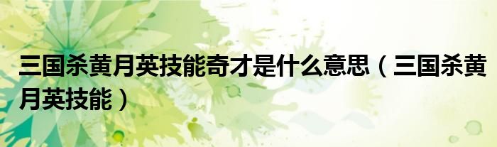大家好,慧慧来为大家解答以上问题,三国杀黄月英技能奇才是什么意思,三国杀黄月英技能很多人还不知道,现在让我们一起来看看吧!