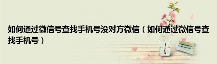 大家好,小晋来为大家解答以下问题,关于如何通过微信号查找手机号没对方微信,如何通过微信号查找手机号很多人还不知道,今天让我们一起来看看吧!