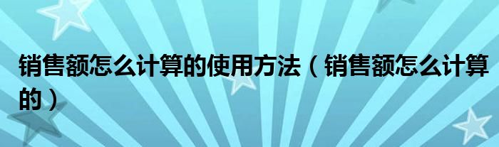 关于销售额怎么计算的使用方法,销售额怎么计算的这个很多人还不知道,今天菲菲来为大家解答以上的问题,现在让我们一起来看看吧!