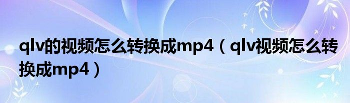 大家好,小晋来为大家解答以下问题,关于qlv的视频怎么转换成mp4,qlv视频怎么转换成mp4很多人还不知道,今天让我们一起来看看吧!