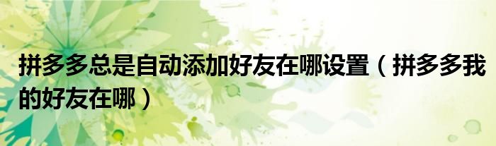 大家好,跳跳为你解答以上问题。拼多多总是自动添加好友在哪设置,拼多多我的好友在哪这个问题很多人还不知道,现在让我们一起来看看吧!