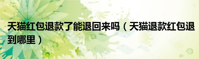 大家好,跳跳为你解答以上问题。天猫红包退款了能退回来吗,天猫退款红包退到哪里这个问题很多人还不知道,现在让我们一起来看看吧!