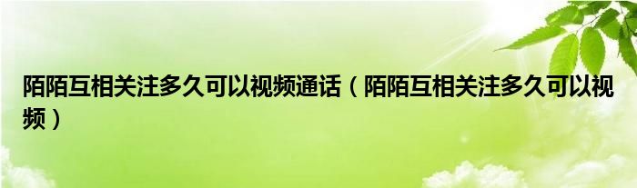 大家好,跳跳为你解答以上问题。陌陌互相关注多久可以视频通话,陌陌互相关注多久可以视频这个问题很多人还不知道,现在让我们一起来看看吧!