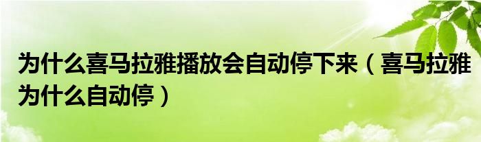 大家好,跳跳为你解答以上问题。为什么喜马拉雅播放会自动停下来,喜马拉雅为什么自动停这个问题很多人还不知道,现在让我们一起来看看吧!