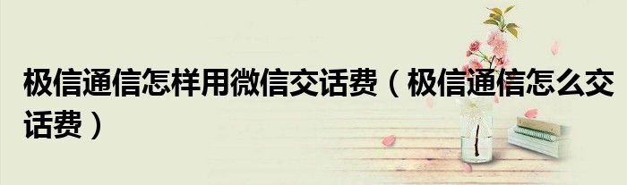 大家好,跳跳为你解答以上问题。极信通信怎样用微信交话费,极信通信怎么交话费这个问题很多人还不知道,现在让我们一起来看看吧!