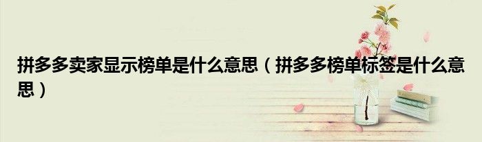 大家好,跳跳为你解答以上问题。拼多多卖家显示榜单是什么意思,拼多多榜单标签是什么意思这个问题很多人还不知道,现在让我们一起来看看吧!