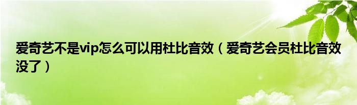 大家好,跳跳为你解答以上问题。爱奇艺不是vip怎么可以用杜比音效,爱奇艺会员杜比音效没了这个问题很多人还不知道,现在让我们一起来看看吧!