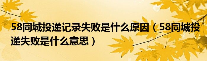 大家好,跳跳为你解答以上问题。58同城投递记录失败是什么原因,58同城投递失败是什么意思这个问题很多人还不知道,现在让我们一起来看看吧!