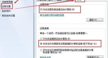 2、使用鼠标右键单击电脑屏幕上的 计算机图标,接着打开“属性”设置界面。进入属性之后点击“远程设置”按钮进入系统属性设置界面,在这个窗口中将选项卡设置为“远程”,并勾选下方的“允许远程协助这台计算机”以及“允许运行任意版本的远程桌面计算机连接”两个选项,勾选之后保存即可!