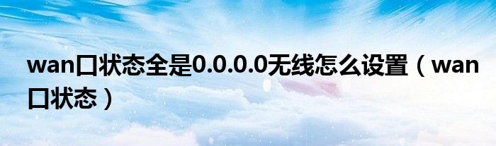 大家好,小晋来为大家解答以下问题,关于wan口状态全是0.0.0.0无线怎么设置,wan口状态很多人还不知道,今天让我们一起来看看吧!