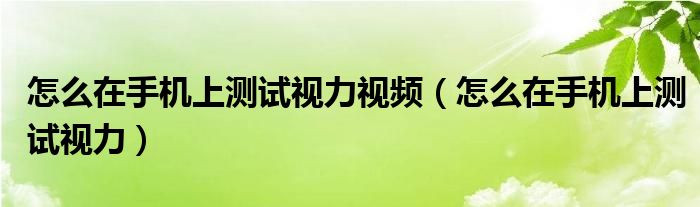 大家好,小晋来为大家解答以下问题,关于怎么在手机上测试视力视频,怎么在手机上测试视力很多人还不知道,今天让我们一起来看看吧!