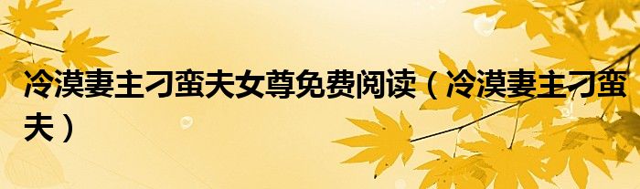 大家好,小晋来为大家解答以下问题,关于冷漠妻主刁蛮夫女尊免费阅读,冷漠妻主刁蛮夫很多人还不知道,今天让我们一起来看看吧!