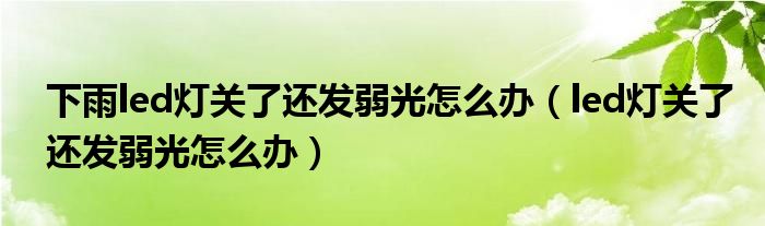 大家好,小晋来为大家解答以下问题,关于下雨led灯关了还发弱光怎么办,led灯关了还发弱光怎么办很多人还不知道,今天让我们一起来看看吧!