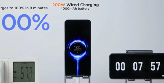 如视频所示,使用有线 HyperCharge 方法只用了三分钟多一点的时间就达到了 50% 的电池电量,而在短短的 7 分 56 秒内达到 100%。使用无线“HyperCharging”,只需 15 分钟就可以让手机充电至 100%。