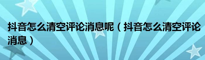 大家好,小晋来为大家解答以下问题,关于抖音怎么清空评论消息呢,抖音怎么清空评论消息很多人还不知道,今天让我们一起来看看吧!