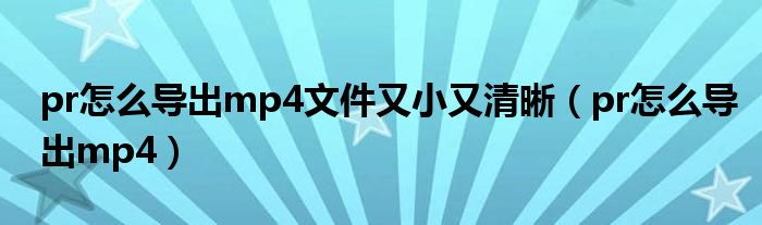pr怎么导出mp4文件又小又清晰(pr怎么导出mp4)