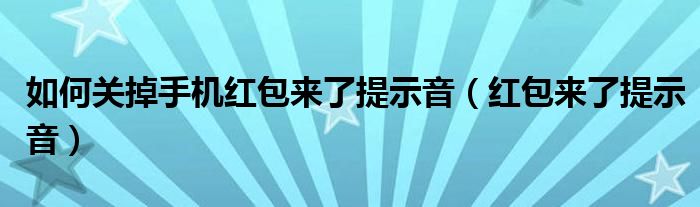 大家好,小晋来为大家解答以下问题,关于如何关掉手机红包来了提示音,红包来了提示音很多人还不知道,今天让我们一起来看看吧!