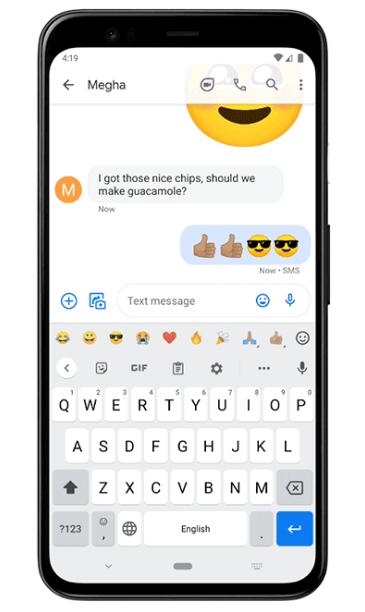 如上图所示,您现在将看到一个表情符号栏,其中包含您最常使用的表情符号。新的表情符号栏使您可以快速访问最常使用的表情符号,从而无需每次想发送表情符号时都打开表情符号键盘,这是一个很小但很重要的功能。不过,由于Google目前正对该功能进行Beta测试,因此新的表情符号栏目前尚不适用于所有人。不过,预计很快就会对公众开放。