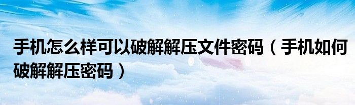 手机怎么样可以破解解压文件密码(手机如何破解解压密码)