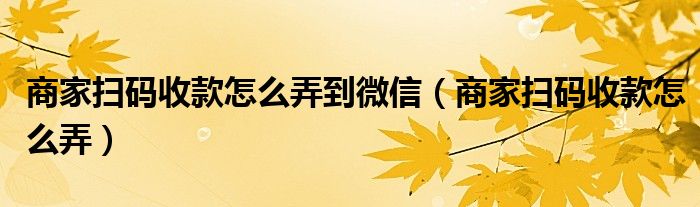 商家扫码收款怎么弄到微信(商家扫码收款怎么弄)