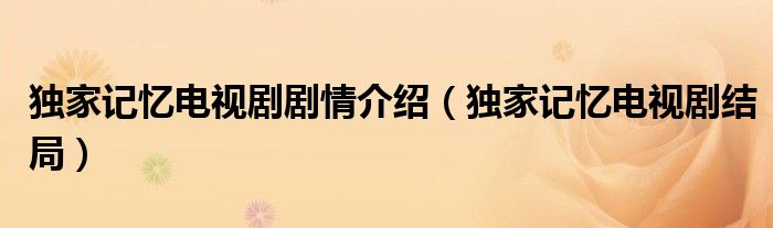 大家好,小晋来为大家解答以下问题,关于独家记忆电视剧剧情介绍,独家记忆电视剧结局很多人还不知道,今天让我们一起来看看吧!