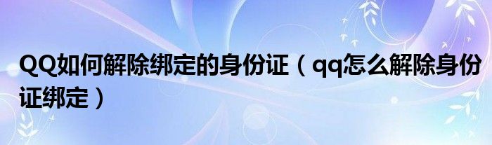 大家好,小晋来为大家解答以下问题,关于QQ如何解除绑定的身份证,qq怎么解除身份证绑定很多人还不知道,今天让我们一起来看看吧!