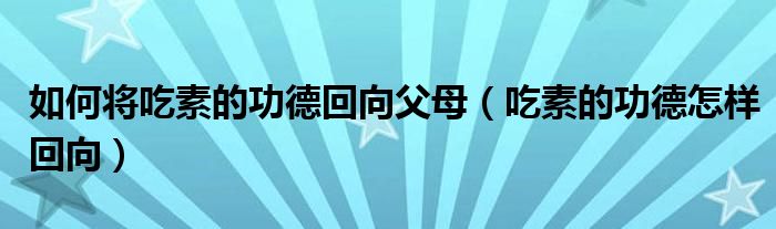 关于如何将吃素的功德回向父母,吃素的功德怎样回向这个很多人还不知道,今天菲菲来为大家解答以上的问题,现在让我们一起来看看吧!