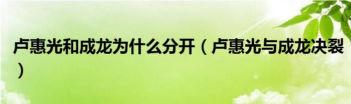 关于卢惠光和成龙为什么分开,卢惠光与成龙决裂这个很多人还不知道,今天菲菲来为大家解答以上的问题,现在让我们一起来看看吧!
