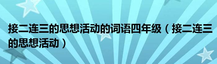 大家好,小晋来为大家解答以下问题,关于接二连三的思想活动的词语四年级,接二连三的思想活动很多人还不知道,今天让我们一起来看看吧!