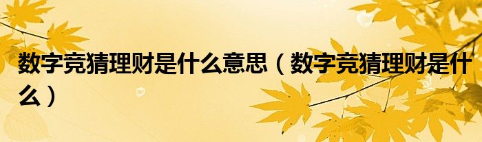 大家好,小晋来为大家解答以下问题,关于数字竞猜理财是什么意思,数字竞猜理财是什么很多人还不知道,今天让我们一起来看看吧!