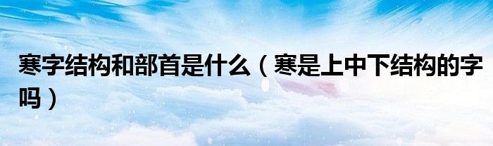 大家好,小晋来为大家解答以下问题,关于寒字结构和部首是什么,寒是上中下结构的字吗很多人还不知道,今天让我们一起来看看吧!