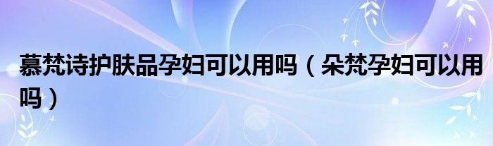 大家好,小晋来为大家解答以下问题,关于慕梵诗护肤品孕妇可以用吗,朵梵孕妇可以用吗很多人还不知道,今天让我们一起来看看吧!