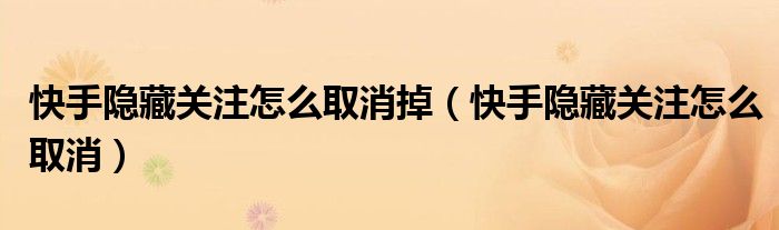 大家好,小晋来为大家解答以下问题,关于快手隐藏关注怎么取消掉,快手隐藏关注怎么取消很多人还不知道,今天让我们一起来看看吧!