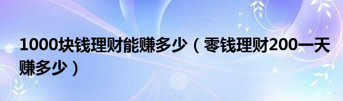 大家好,小晋来为大家解答以下问题,关于1000块钱理财能赚多少,零钱理财200一天赚多少很多人还不知道,今天让我们一起来看看吧!